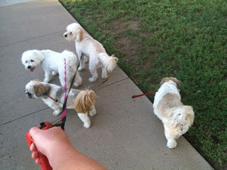 Yesterday after my blog things went much better! The dogs all started to play together! We went for a brief walk only cause it was so hot out and there was FOUR dogs and only ONE of me! It was quite the challenge I must say! The dogs and I went to bed pretty early for a Saturday night. Around 9pm. Sleeping went okay. They all wanted to bark at me in the middle of the night to go out so I was up pretty often letting them out to go potty. At one point Jack thought it was play time and brought me a toy and started wagging his tail like.. "come on its 3am don't you know this is play time here!" Silly Jack. Then 6:30am came along quickly and I said forget it... you guys got me Im up! Made a cup of coffee (a little too strong... Im not sure I really have ever made a cup on my own before) and let them out to play. They have been running around chasing balls and watching the Olympics with me. So it's been a good morning so far... and Yes Alaina I even remembered to give them their meds! So Now hope you enjoy the brief video and a few photos from yesterday and today.